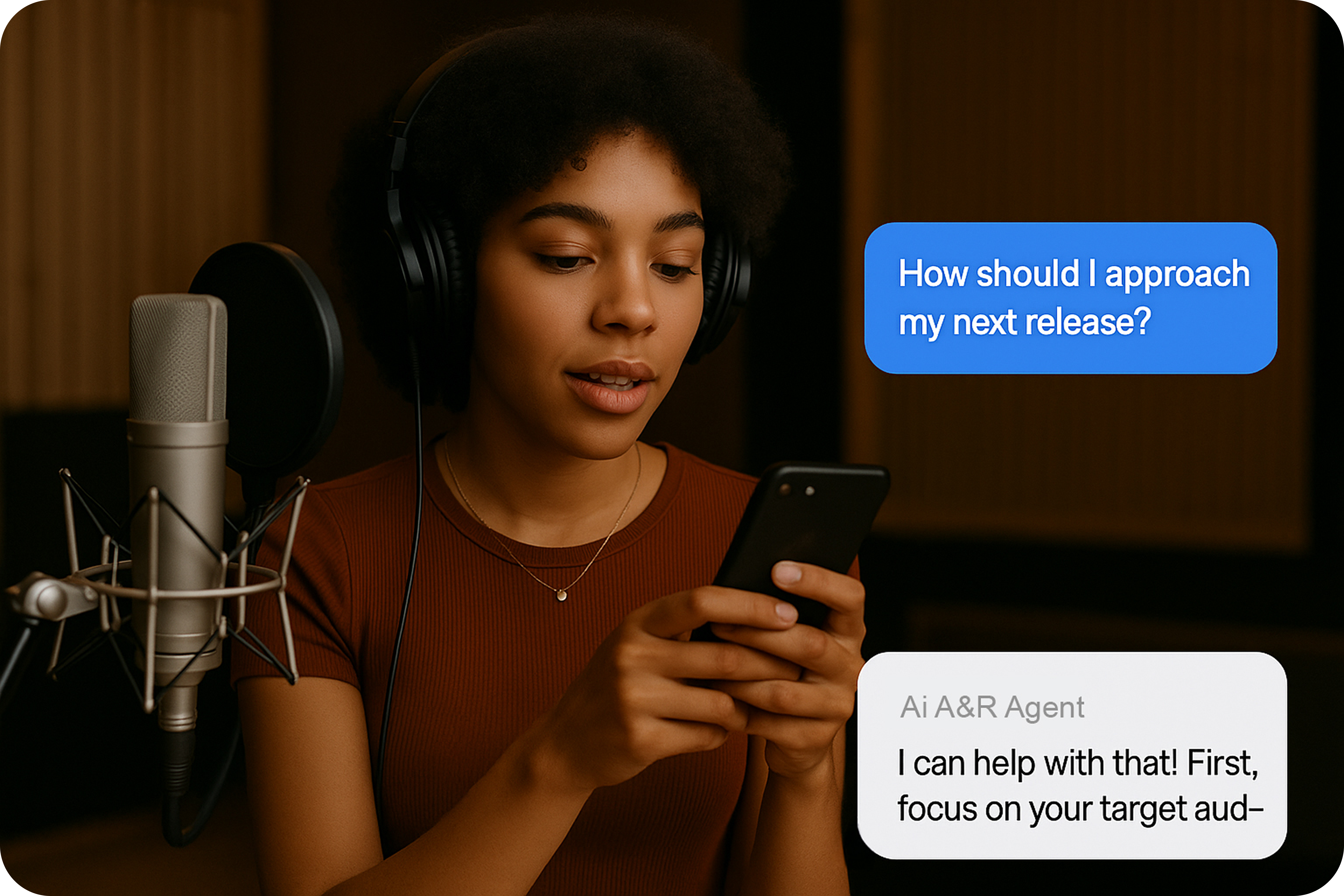 Whether you’re a label, coach, gear brand, or sync agency — your A&R agent works 24/7 to chat, review music, and qualify leads. No forms, no guesswork. Just smart interactions that scale.