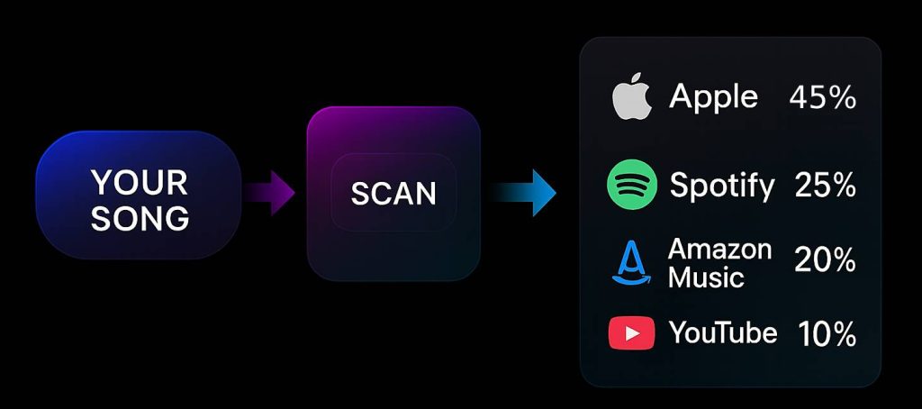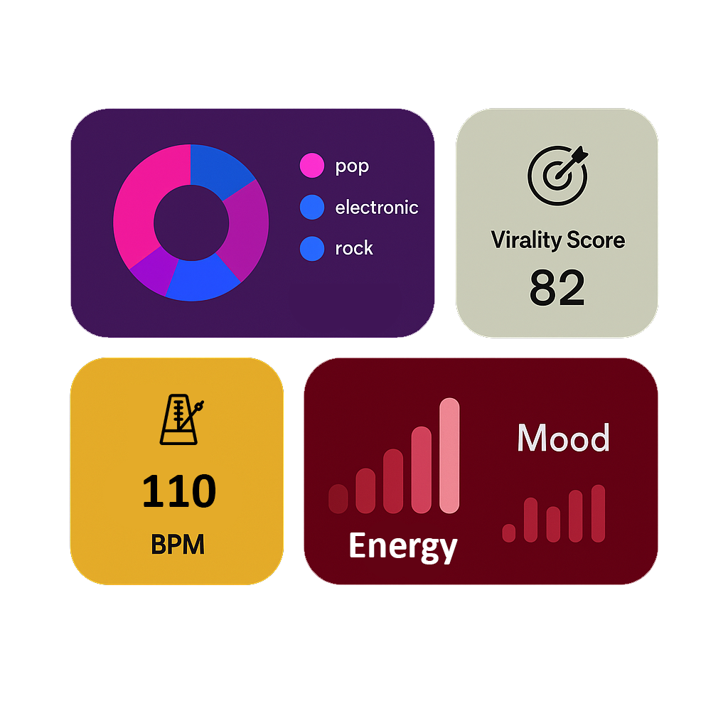 Delivers a performance score that highlights the platforms, audiences, and distribution channels best suited for that track.